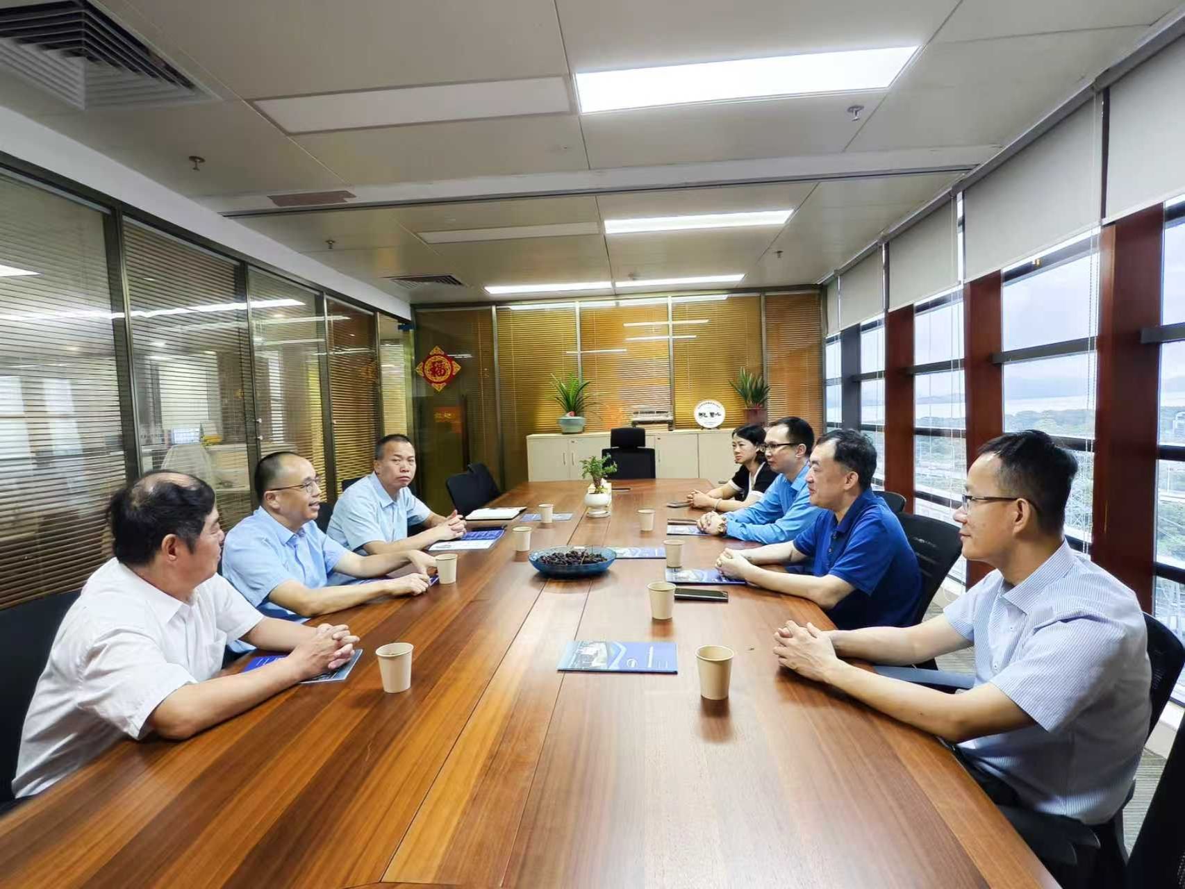 在华南中远海运集装箱运输有限公司,公司副董事长、党委副书记黄新群,纪委书记杨真龙,副总经理林斌与谢潮添一行座谈。双方围绕智能航运、绿色低碳智能船舶研制、高素质船员培养、毕业生招聘等方面开展交流。