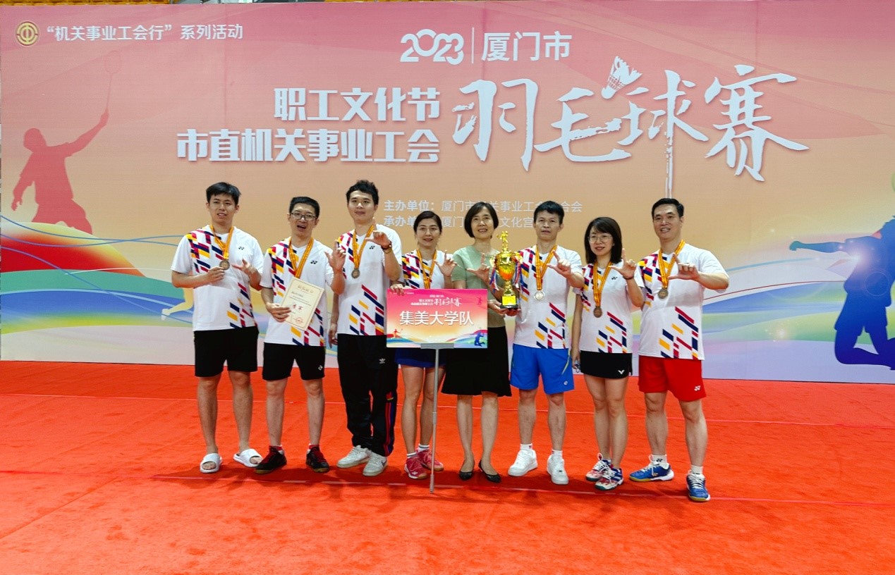 近日,由厦门市机关事业工会联合会主办、厦门市工人文化宫承办的2023厦门市职工文化节市直机关事业工会羽毛球团体赛举行,我校教师陈黎震、谢杰云、黄庆平、吴贵森、林子潇、陈豪、巫晶晶、孟媛媛组成的“亚洲中文精品乱码教工队”经过奋力拼搏,荣获季军。