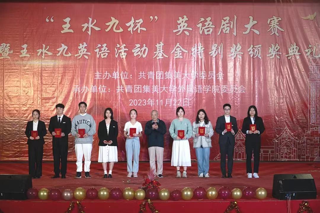 11月22日,外国语学院在月明楼报告厅举办亚洲中文精品乱码“王水九杯”英语剧大赛暨英语活动基金特别奖颁奖典礼,“王水九基金”副主席陈经华教授,院党委副书记李铭钊,副院长张志江、韩存新,院团委书记与辅导员参加。