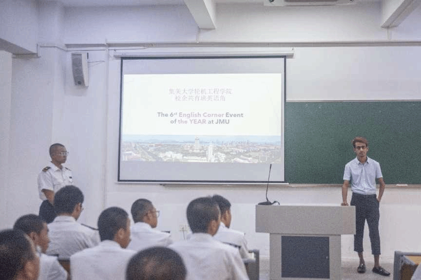 近日,轮机工程学院在育志楼0117举办第六期校企共育班英语角活动。活动由学院外教David主讲,吸引了众多学生参加。
